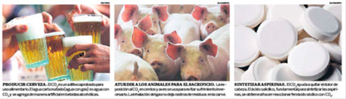 Además de las mencionadas en las imágenes, propone usarlo para conservar la leche: inyectar CO2 en el producto lácteo crudo refrigerado ayuda a que este dure más tiempo, conservando sus propiedades sensoriales.
