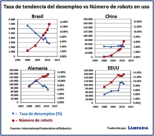 Analizando las tasas de desempleo de países que actualmente utilizan una cantidad considerable de robots en sus industrias, se puede observar que este miedo de que los avances en tecnología vayan a crear un mayor desempleo es completamente infundado.