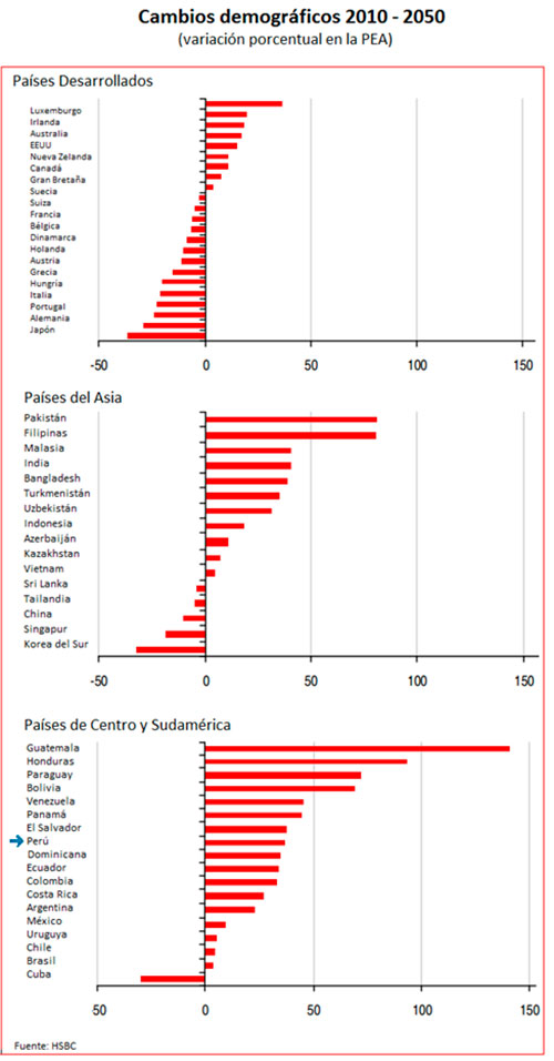 El Perú todavía es un país emergente. Nos encontramos en una etapa temprana de nuestro desarrollo. Como indicó un informe del banco HSBC: “A medida que sus trabajadores estén cada vez mejor equipados con más maquinaria y tecnología, y su nivel de habilidades se eleve, su productividad [en el Perú] aumentará, el PBI seguirá creciendo y junto a ello los ingresos reales de los trabajadores.” (Ver en Lampadia (L): ¿Cómo podemos aprovechar nuestro bono demográfico?)