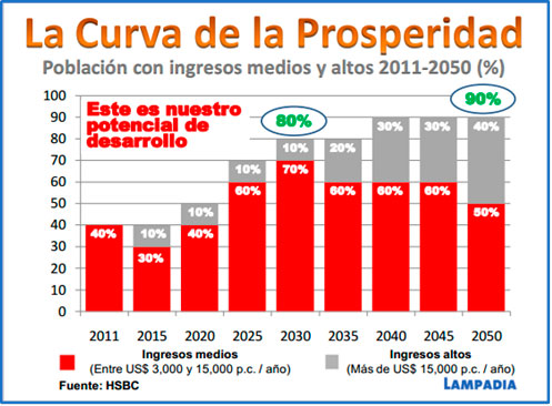 Es evidente, entonces que una leve variación del PBI tiene un impacto enorme en los niveles de renta per cápita y, consecuentemente, en la reducción de la pobreza y el bienestar social de un país. Como explica Sala-i-Martín, el crecimiento no siempre es sostenido, lo importante es tener un promedio adecuado a las posibilidades de cada país. Recordemos que el HSBC dice que para el 2050, el Perú podría ser la economía 26 del mundo con no más de 10% de pobres (no-extremos) si crecemos a un promedio de 5.5% anual. (Ver en Lampadia: 2050: ¿El Perú en el puesto 26?).