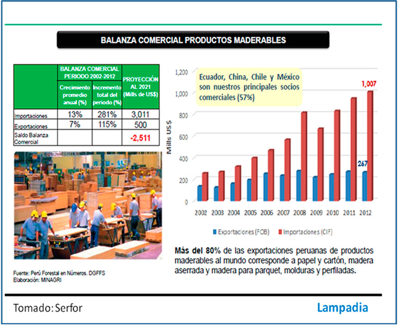 Según Muñoz, el potencial es inmenso. Solo para el mercado interno peruano se importa anualmente 1,000 millones de dólares en productos maderables y sus derivados. En los últimos diez años las importaciones de estos productos han crecido 281%, mientras que nuestras exportaciones solo se incrementaron en un 115%. (Ver cuadro)