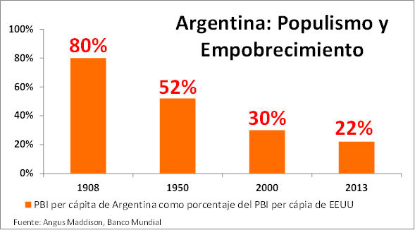 Argentina sigue atascada en el populismo instaurado por Perón, fielmente interpretado por los Kirchner. Esa estrategia política y su correspondiente manejo económico están nítidamente expresados en una carta que Perón le dirige al General chileno Carlos Ibáñez del Campo, quien acababa de ser elegido presidente de su país (1952): “Mi querido amigo: dele al pueblo, especialmente a los trabajadores, todo lo que pueda. Cuando le parezca que ya les está dando demasiado, deles más. Verá los resultados. Todos tratarán de asustarlo con el espectro de un colapso económico. Pero todo eso es una mentira. No hay nada más elástico que la economía, a la que todos temen tanto porque nadie la entiende”. Ver en Lampadia (L): Despegue y caída de dos grandes de AL).