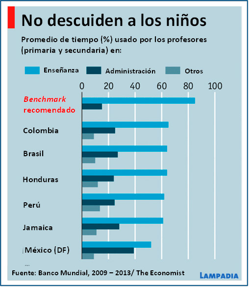 La razón principal tras el fracaso educacional de América Latina es simple. La región produce un gran número de profesores, reclutados de los graduados escolares menos brillantes. Les entrena mal y paga una miseria (entre 10% y 50% menos que otros profesionales. Entonces, enseñan mal.