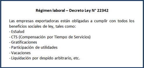 Pretender eliminar este régimen especial es atentar contra una industria competitiva en los pujantes mercados mundiales, que da empleo de calidad a cientos de miles de peruanos y promueve la innovación y la creatividad. Según información de Comex Perú, basada en cifras del Ministerio de Trabajo, solo entre los años 2006 y 2011, el régimen laboral para las exportaciones no tradicionales ha generado más de 1.6 millones de empleos en el Perú.