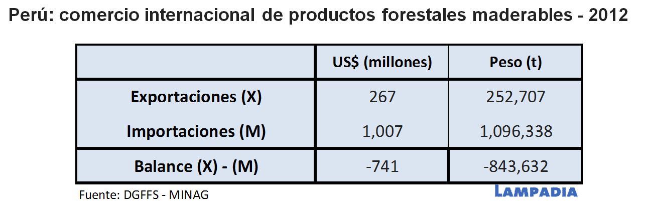 Increíblemente, el Perú tiene una balanza comercial negativa en el comercio de madera, mientras Chile logró exportar productos forestales por un valor de US$5,300 millones el año pasado, dando trabajo directo a 118 mil empleados, de acuerdo a cifras de Grupo de Información Forestal y Análisis Económico del Instituto Forestal de Chile. El potencial de desarrollo del sector en el Perú debe ser del orden de cinco veces el de Chile, por lo que estaríamos desperdiciando la oportunidad de generar una producción forestal de más de US$ 25,000 millones anuales, dando trabajo de calidad a toda la población de la selva y a buena parte de la sierra.