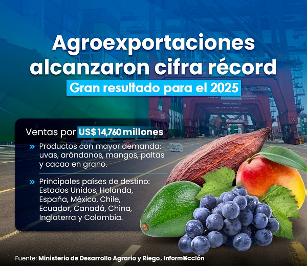Las agroexportaciones peruanas en el 2025 rasparon los US$ 15 mil millones. Más aún… ¡rompimos el récord histórico del 2024, cuando alcanzamos – por primera vez en la historia – los US$ 12,360 millones!