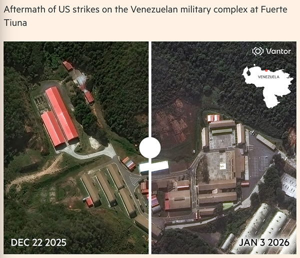 Se reportaron explosiones en varios objetivos militares y de comunicaciones en Caracas y sus alrededores la madrugada del sábado. Entre los objetivos se encontraban el extenso complejo militar de Fuerte Tiuna, la base aérea principal de La Carlota y un centro de comunicaciones en el Cerro El Volcán.