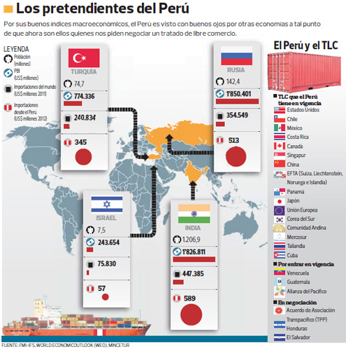 José Luis Silva, titular del MINCETUR, sobre el acuerdo con la India, “en el primer trimestre del 2013 sabríamos si se aprueba el informe de factibilidad” (diciembre 2012). “Seguimos evaluando, va más allá de lo técnico, hasta lo político. Estamos consultando a los gremios empresariales para conocer las sensibilidades” (21 de febrero 2013).