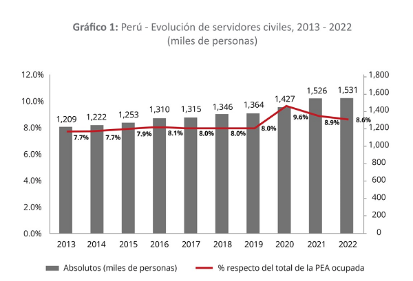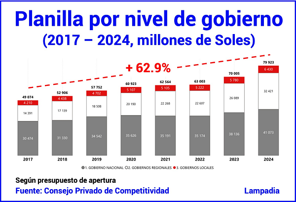 Clamorosamente el Estado socialistoide y anti-sector-privado, sigue siendo una suerte de agencia de empleos para los amigotes de los sucesivos gobiernos que desde el de Humala, solo agregan más personal.