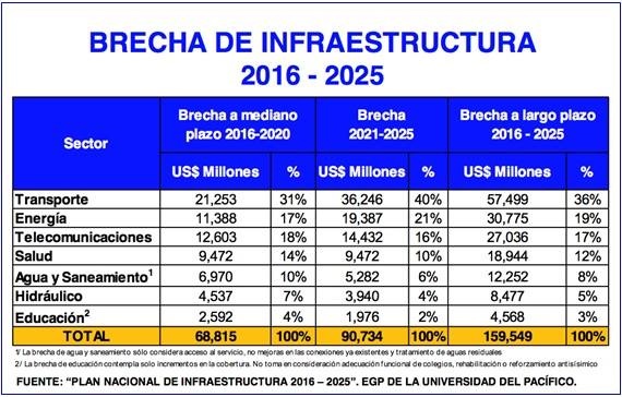 La brecha de infraestructuras es una de las carencias que impiden que en el Perú tengamos una mejor calidad de vida y una economía más competitiva. Junto con las brechas de educación y salud, es una de nuestras necesidades más imperiosas. En Lampadia estamos siguiendo este tema lo más cercanamente posible. Ver nuestras publicaciones anteriores: