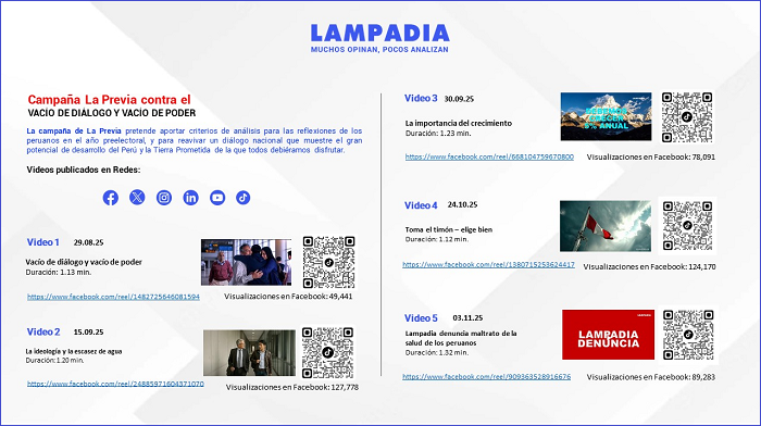 Como hicimos el 2021con la campaña de ‘Defensores de la Inversión’, hemos iniciado una campaña pre-electoral, La Previa, con la que pretendemos aportar criterios de análisis para las reflexiones de los peruanos de miras a las elecciones del 2026, y para reavivar un diálogo nacional que muestre nuestro gran potencial de desarrollo, así como la Tierra Prometida a la que debemos ambicionar.