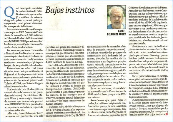 El año 81 acompañé una propuesta del entonces Grupo Hochschild Internacional, a Minero Perú para invertir 1,000 millones de dólares en las Bambas, dándole al Estado una participación graciosa del 20%. No se aceptó.