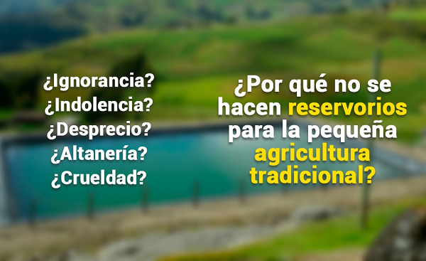 Más vale un pequeño reservorio… que nada. Inclusive, como los pequeños reservorios son baratos y rápidos de hacer, a la larga, es más fácil construir muchos pequeños reservorios, que sumados almacenan una gran cantidad de agua, que invertir en pocos mega reservorios que – en la práctica – nunca se construyen.
