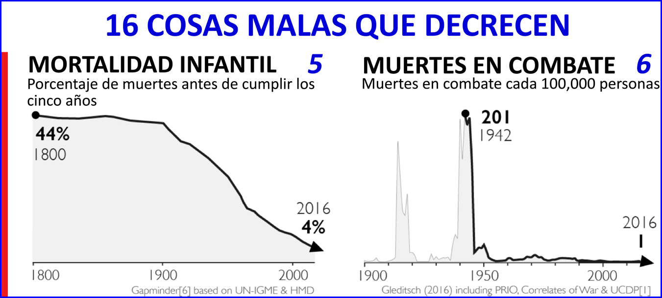 Todos somos sujetos de eternas cascadas de noticias negativas desde todo el mundo: guerras, hambrunas, desastres naturales, errores políticos, corrupción, cortes de presupuestos, enfermedades, despidos masivos y terrorismo. Si algún periodista reportara sobre aviones que no cayeron, o sobre cosechas que no fallaron, perderían sus puestos. Las historias sobre mejoras graduales rara vez aparecen en las carátulas, así se den en una escala dramática e impacten en millones de vidas.