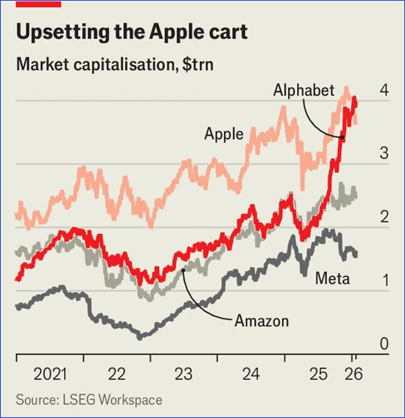 La compañía ya está en racha. El valor de mercado de Alphabet, la empresa matriz de Google, superó recientemente al de Apple y ahora solo está por detrás de Nvidia (véase el gráfico).