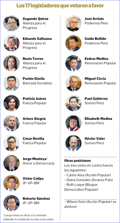El respaldo al texto, que aún debe pasar por el pleno, provino de legisladores de FP, APP, Renovación Popular, Somos Perú, la Bancada Socialista, Podemos Perú y JP-VP-BM.