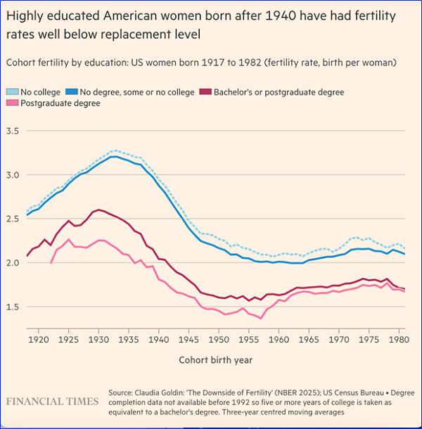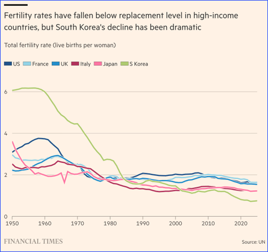 Además, como señala la premio Nobel Claudia Goldin en su informe de 2023 « El lado negativo de la fertilidad », todos los miembros de la OCDE (excepto Israel) tienen una tasa de fertilidad total (promedio de hijos por mujer a lo largo de la vida) inferior a 2,1 (la tasa de reemplazo). Además, esto no es nada nuevo: «en muchos países actualmente desarrollados se han registrado bajos niveles de fertilidad desde mediados de la década de 1970».