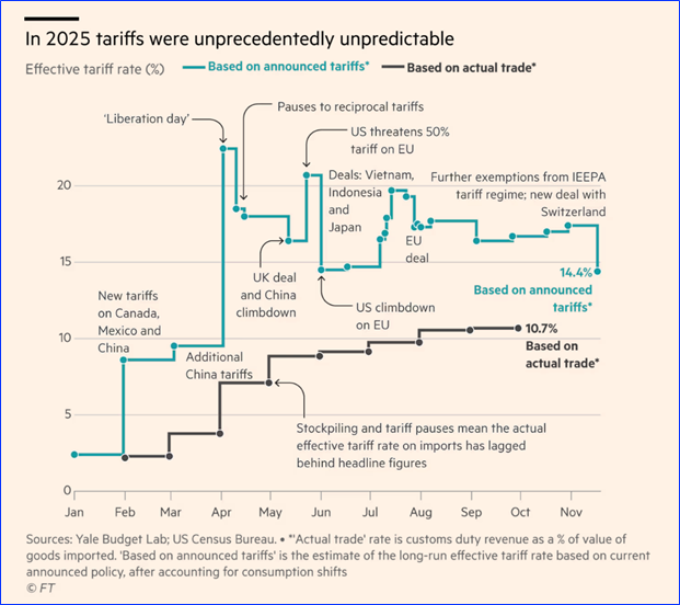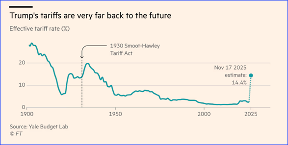 Durante prácticamente el mismo período, Donald Trump, obsesionado con los déficits comerciales de Estados Unidos —tanto en general como, aún más, en los productos manufacturados— aumentó los aranceles promedio a un estimado de 14.4%, el nivel más alto desde poco después de la Segunda Guerra Mundial.