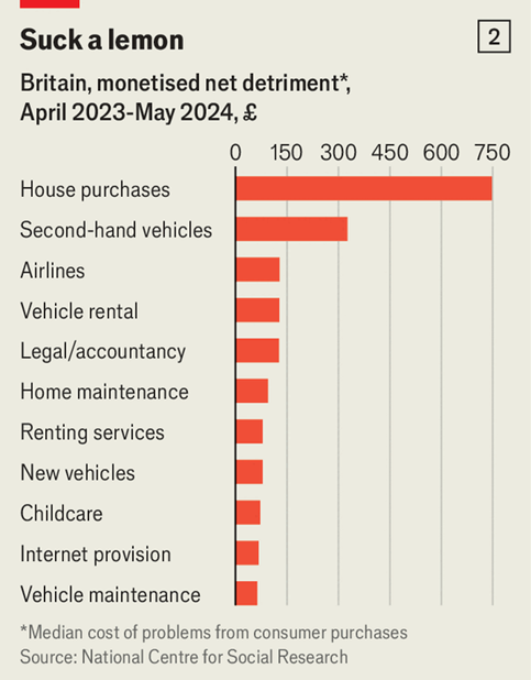 Un estudio encargado por el gobierno en Gran Bretaña en 2024 estimó que los ciudadanos perdían el equivalente al 2.5 % del PIB al año como resultado de la compra de bienes y servicios de una calidad inaceptablemente baja o con otros defectos.