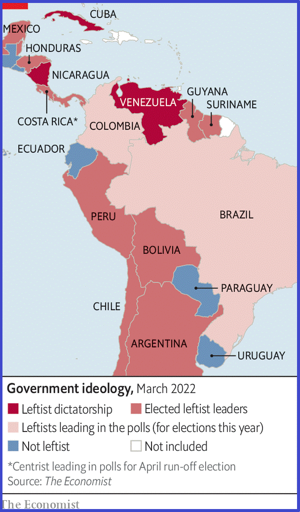 El cuadro es más complicado de lo que parece. La tendencia dominante durante varios años ha sido la oposición a la titularidad, al menos donde las elecciones son justas. A la izquierda le ha ido bien principalmente porque los votantes rechazaron a los gobiernos de derecha, que han tenido que lidiar con el estancamiento económico y luego con la pandemia. Las encuestas regionales muestran que los votantes se agrupan en el centro. Pero quieren mejores servicios públicos y piensan que sus países se gobiernan en beneficio de unos pocos privilegiados, lo que puede ayudar a la izquierda.